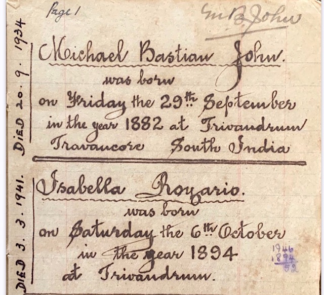 Michael Bastian John was born on Friday the 29th September in the year 1882 at Trivandrum, Travancore, South India.
