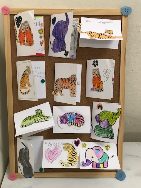 These cards were made by children from a Shaws preschool centre which invited AJ to meet the kids, do a reading and answer their questions,