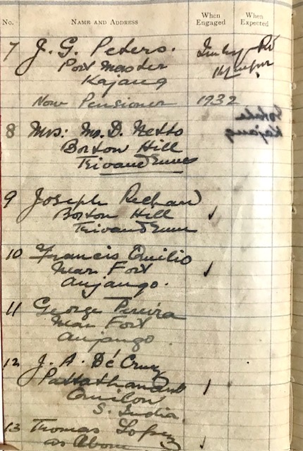 My grandfather’s list also had 10 people surnamed Gomez, six surnamed Fernandez and four, Lopez. Along with those named De Cruz, Coelho, Netto, Rozario, Miranda and Rebello, these pages in the diary describe a group who shared a number of things in common.