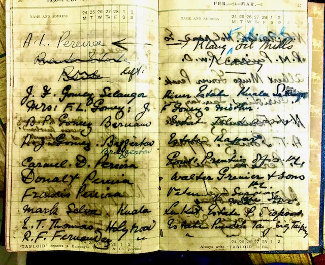 Shortly before he died in 1934, my grandfather wrote down a long list of people he knew in Malaya and India. Their names fill more than 20 pages of the 1930 diary my cousin Bella Panicker showed me in Taiping when I visited in 2022.