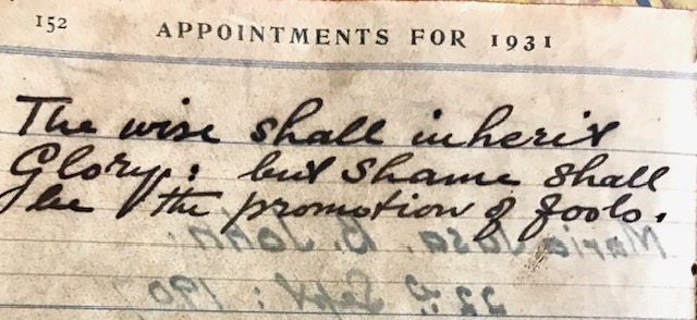 If that line from Proverbs made me pause and wonder, two other pages in that diary break my heart.